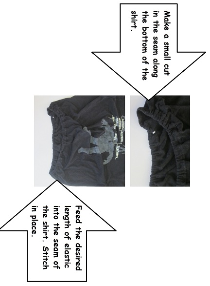 My hubby just gave me a huge pile of really cool men’s T-shirts that he no longer wears after cleaning out our closet. I have lost a lot of weight over this last year and am not so quick to want to hide in large T-shirts anymore like I used to, but I am totally a T-shirt lover and couldn’t bare to throw the shirts out. I decided that I’d try to find a way to make them more feminine and even sexy, and after a quick search for inspiration around the web I found just the right combination that works for me!