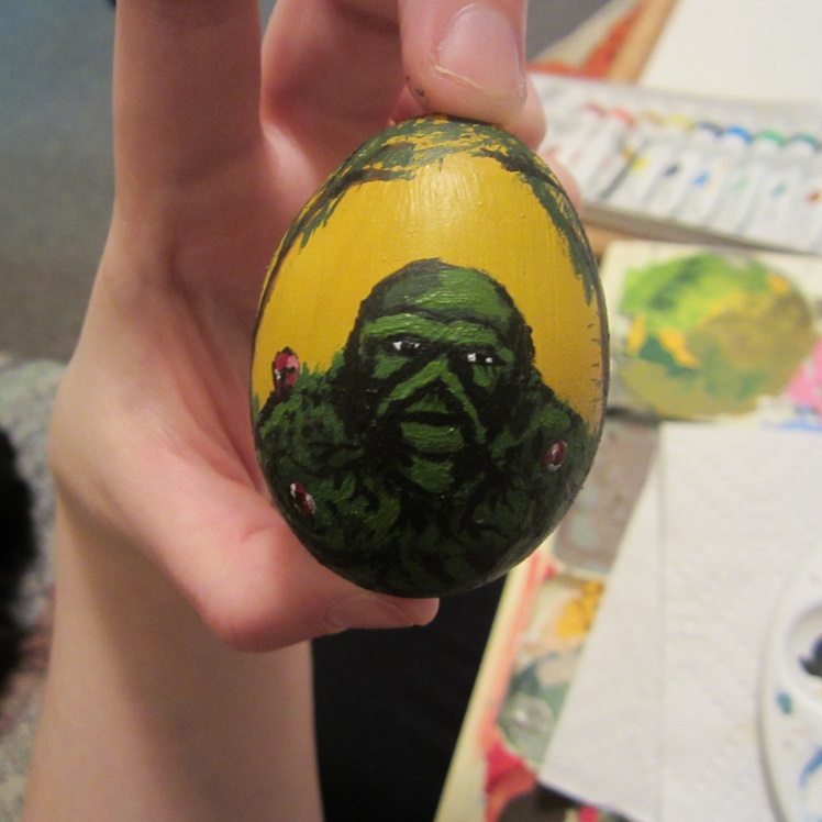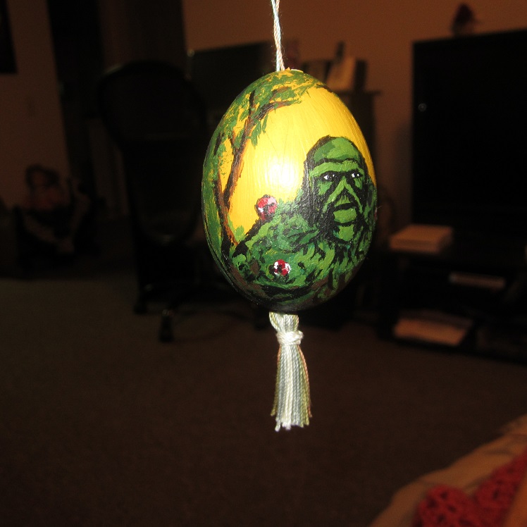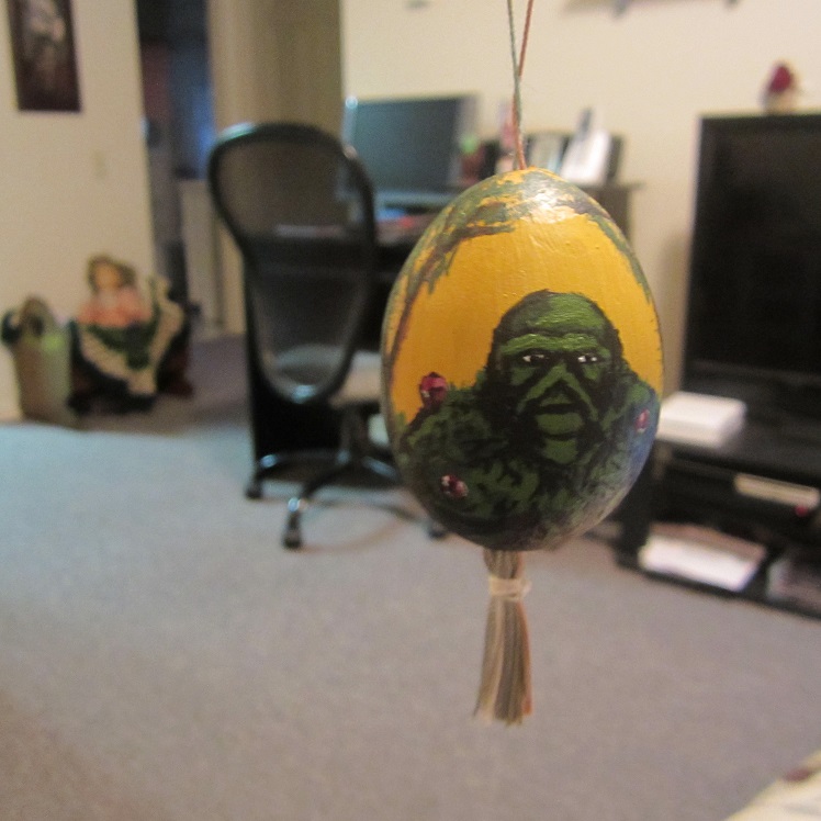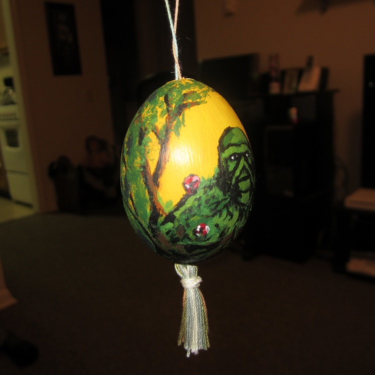 The hubby loves Swamp Thing, and I do too! So I dragged out the paintbrushes and detailed my swampy heart out! I still haven’t sprayed it with the clear coat to make it look shiny and keep it protected yet, but here are the results! Enjoy!