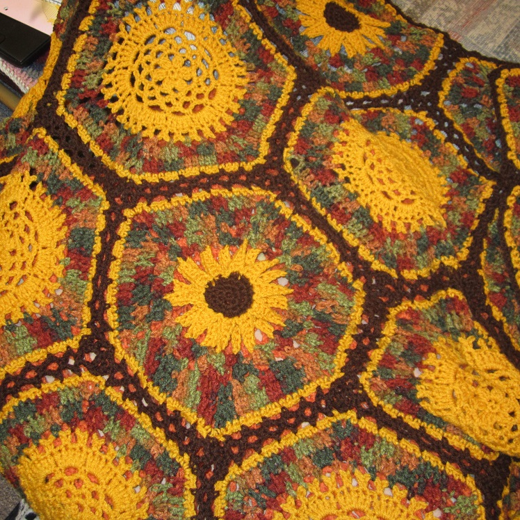 Check out this sunflower blanket I made for my mom awhile back! She was soooooo happy with it! The pattern is from a crochet magazine I had on hand , and you can buy it here. I saw some pictures where people used Christmas colors on this and those were cute too!
