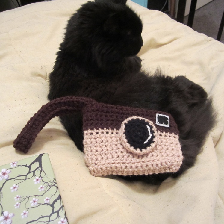 Rw 7-8: Ch 1, turn. Sc in same st and down the other 15 st. When you fasten off leave a tail long enough to fold down the top of the camera and sew it in place across from it to create the top part of the camera.